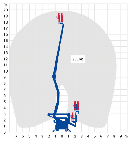 Für sämtliche Arbeiten in großer Höhe, bei denen ein häufiger Standortwechsel erforderlich ist, spielt die LKW-Arbeitsbühne mit einer Arbeitshöhe von 20,00 m ihre ganzen Vorteile aus. Mit einem Klasse B Führerschein dürfen Sie den Hubsteiger auf öffentlichen Straßen bewegen. Die Arbeitsbühne besitzt eine Traglast von 250 kg, was den Transport schwerer Arbeitsmaterialien ermöglicht. Die maximale seitliche Reichweite liegt – lastenabhängig – bei zehn Metern. Die kompakte Bauweise der LKW Arbeitsbühne garantiert hohe Stabilität bei der Arbeit in Maximalhöhe.