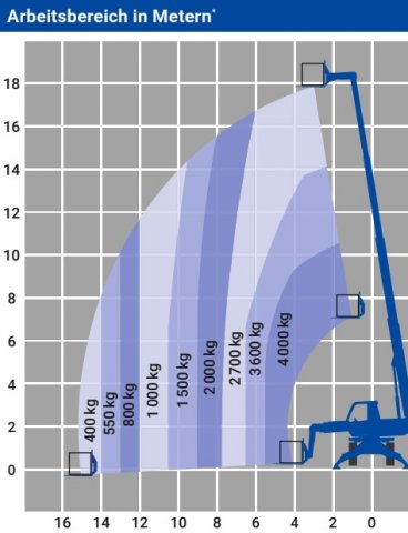 Dieser drehbare Teleskoplader erreicht eine Hubhöhe von 18,00 m. Die maximale Tragkraft beträgt 4.000,00 kg. Mit diesen Leistungseigenschaften ist der Telestapler bestens für viele Aufgaben auf etlichen Baustellen geeignet. Wie alle Teleskopstapler verfügt natürlich auch dieses Modell über einen leistungsstarken Diesel-Allrad Antrieb. Die hydraulischen Abstützungen sorgen für einen sicheren Stand auch auf unebenen Gelände. Unser Lift Store Mietmaschinen stehen für Ihre Einsätze im gesamten Bundesgebiet zur Verfügung.